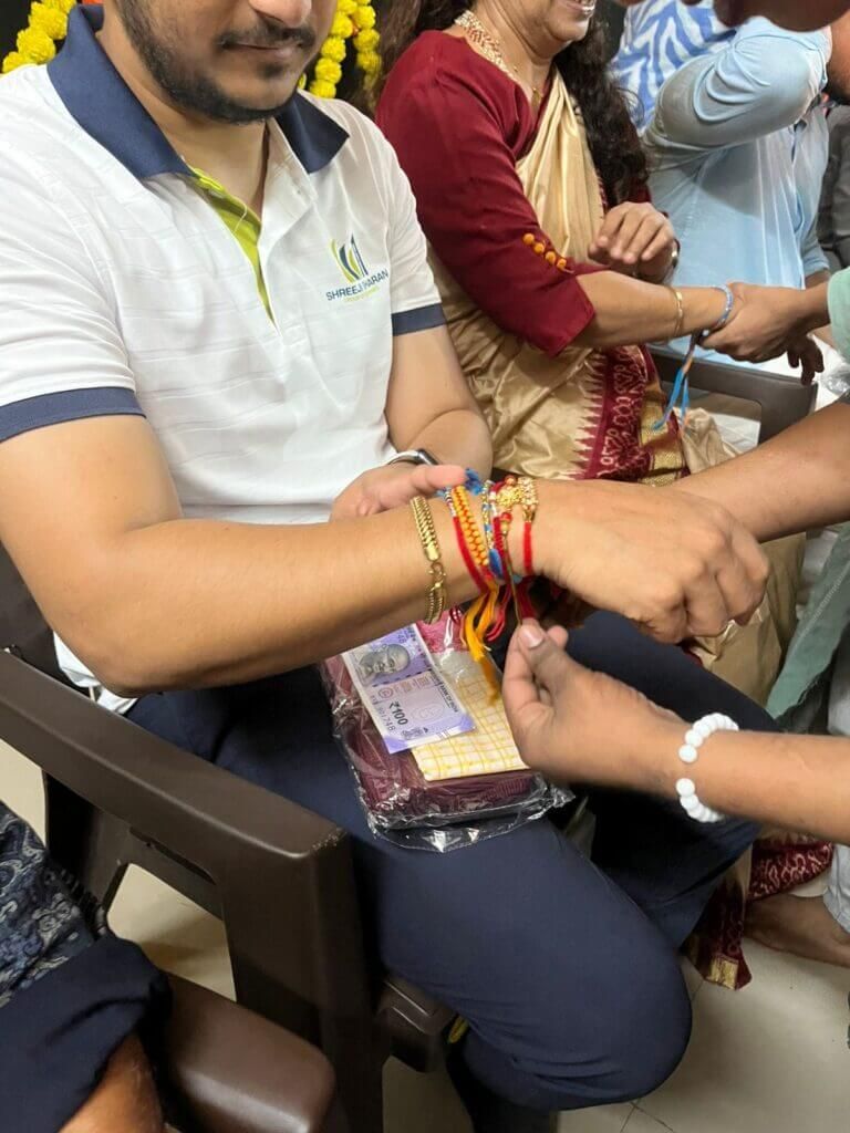 The highlight of the evening was the Rakhi-tying ceremony. As the girls tied Rakhis on the wrists of the Shreeji Sharan team members, the gesture carried deep meaning — a silent promise of protection, care, and brotherhood. The bonds formed in those moments went beyond tradition, offering the girls a sense of belonging and trust.